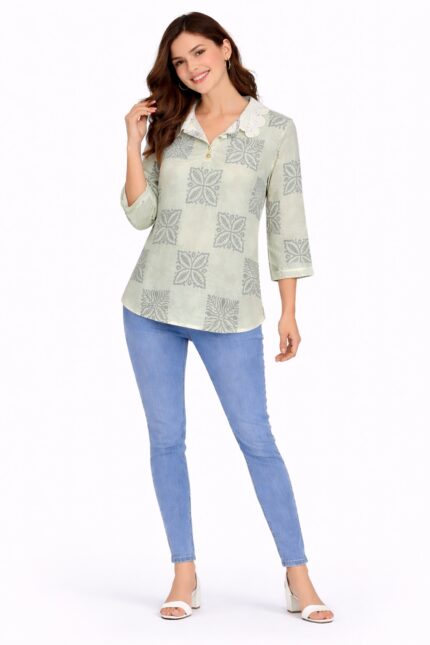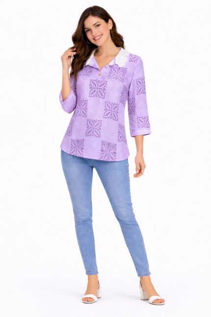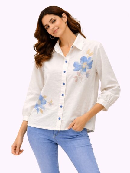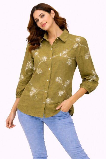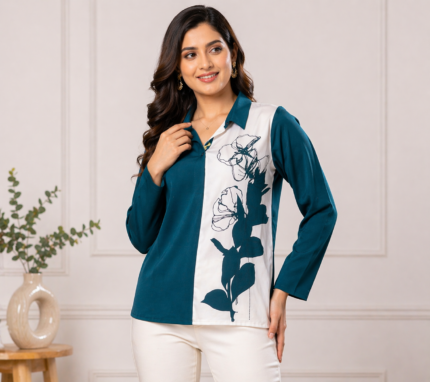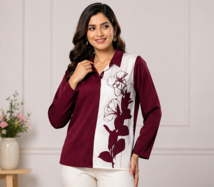 Upgrade your everyday style with this elegant and lightweight women’s shirt, designed for comfort and effortless fashion. Featuring a soft textured fabric with a subtle floral print, this shirt is perfect for both casual outings and semi-formal looks.