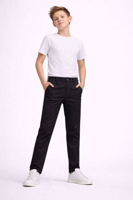 Give your kids a sharp and stylish look with these solid black smart-fit pants, designed for both casual and semi-formal wear. With a clean finish and structured design, these pants are perfect for school events, outings, and festive occasions.