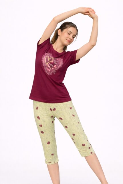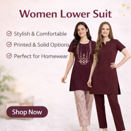 Upgrade your daily comfort with this wine-colored lower suit set, designed with ethnic-inspired front print detailing and soft printed lowers. The rich color tone gives a premium and classy home-wear feel, perfect for women who like comfort with style.