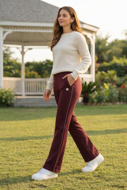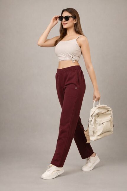 Step out in style with these premium loop knit lowers, designed for modern urban women who value both comfort and fashion. Featuring a rich maroon shade and sleek straight fit, these lowers are perfect for travel, casual outings, and everyday wear.