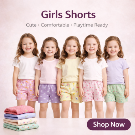 Add charm and color to your girls’ wardrobe with these cute printed shorts, featuring fun designs like hearts, stars, unicorns, florals, and playful patterns. Designed especially for comfort and style, these shorts are perfect for daily wear, summer outings, and playtime.