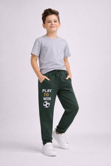 Bring sporty energy to your kids’ wardrobe with these game-themed printed track pants, featuring bold sports icons, typography like “GAME”, “MORE”, and numeric elements. Designed for comfort and style, these pants are perfect for daily wear, outdoor play, and casual outings.