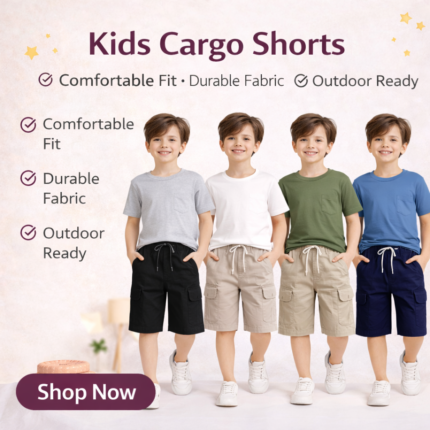 Give your child a stylish and practical look with these Kids Cargo Shorts (C-610). Designed for comfort and utility, these shorts are perfect for everyday wear, outdoor play, and casual outings.