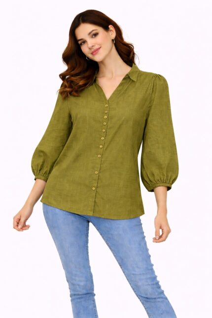 Women Solid V-Neck Button Top | Stylish Casual Shirt (Free Size)