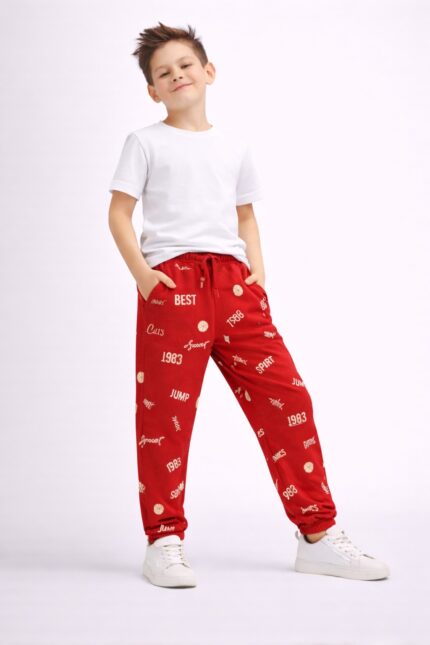 Give your kids a trendy street-style look with these urban printed track pants, featuring bold sport typography, numbers, and graphic elements (JUMP, 1983, etc.). Designed for both comfort and style, these pants are perfect for daily wear, outings, and active play.