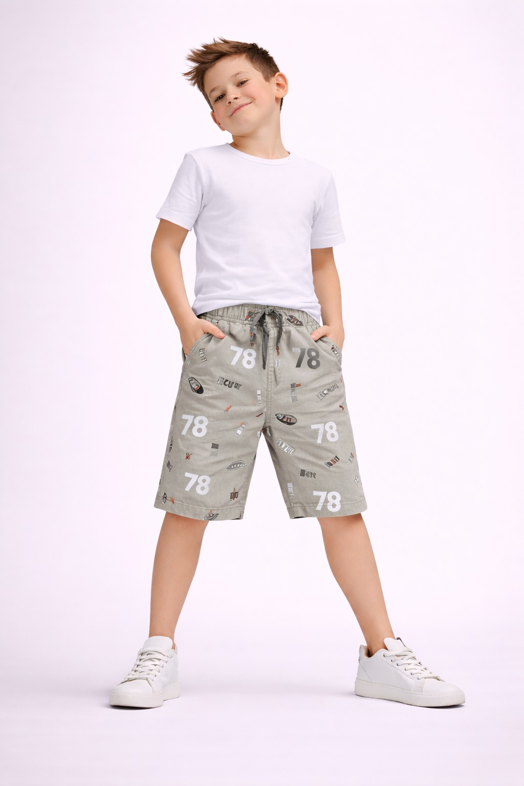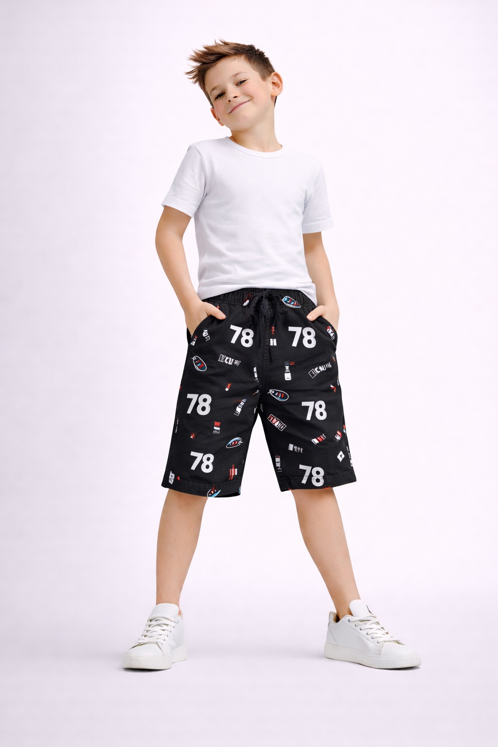 Upgrade your kidsโ casual wardrobe with these sporty printed shorts, featuring bold โ78โ number graphics and minimal sporty icons. Designed for comfort, flexibility, and everyday use, these shorts are perfect for playtime, outings, and summer wear.
