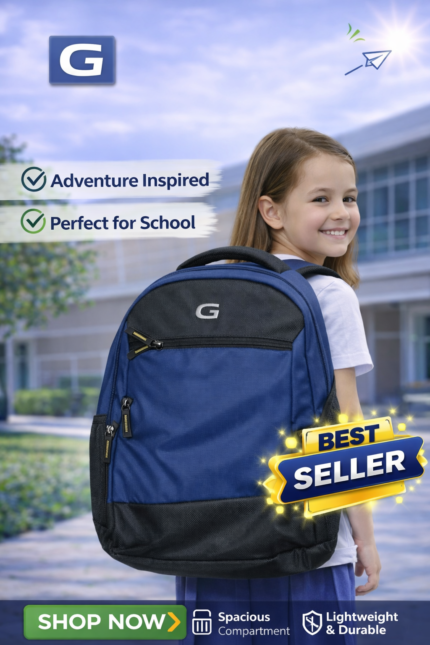 The G Backpack is designed for durability, comfort, and everyday school use. Made with strong, lightweight fabric, it features spacious compartments to carry books, notebooks, and essentials easily. The padded shoulder straps ensure comfortable carrying, while the stylish design makes it perfect for students who want both functionality and a trendy look for school.
