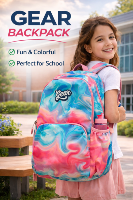 The Gear School Bag is designed for durability, comfort, and everyday school use. Made with strong, lightweight fabric, it features spacious compartments to carry books, notebooks, and essentials easily. The padded shoulder straps ensure comfortable carrying, while the stylish design makes it perfect for students who want both functionality and a trendy look for school.