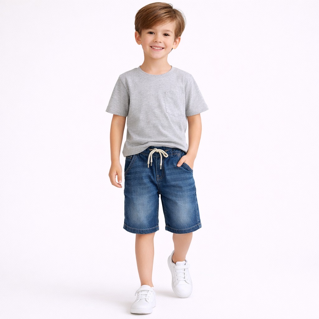 Give your child a cool and casual look with these Kids Denim Knee-Length Shorts (5803). Designed with a modern fit and soft denim fabric, these shorts are perfect for everyday comfort and style.