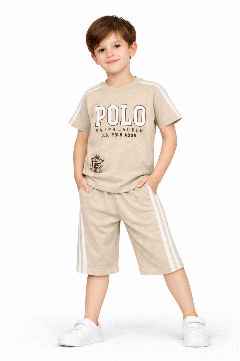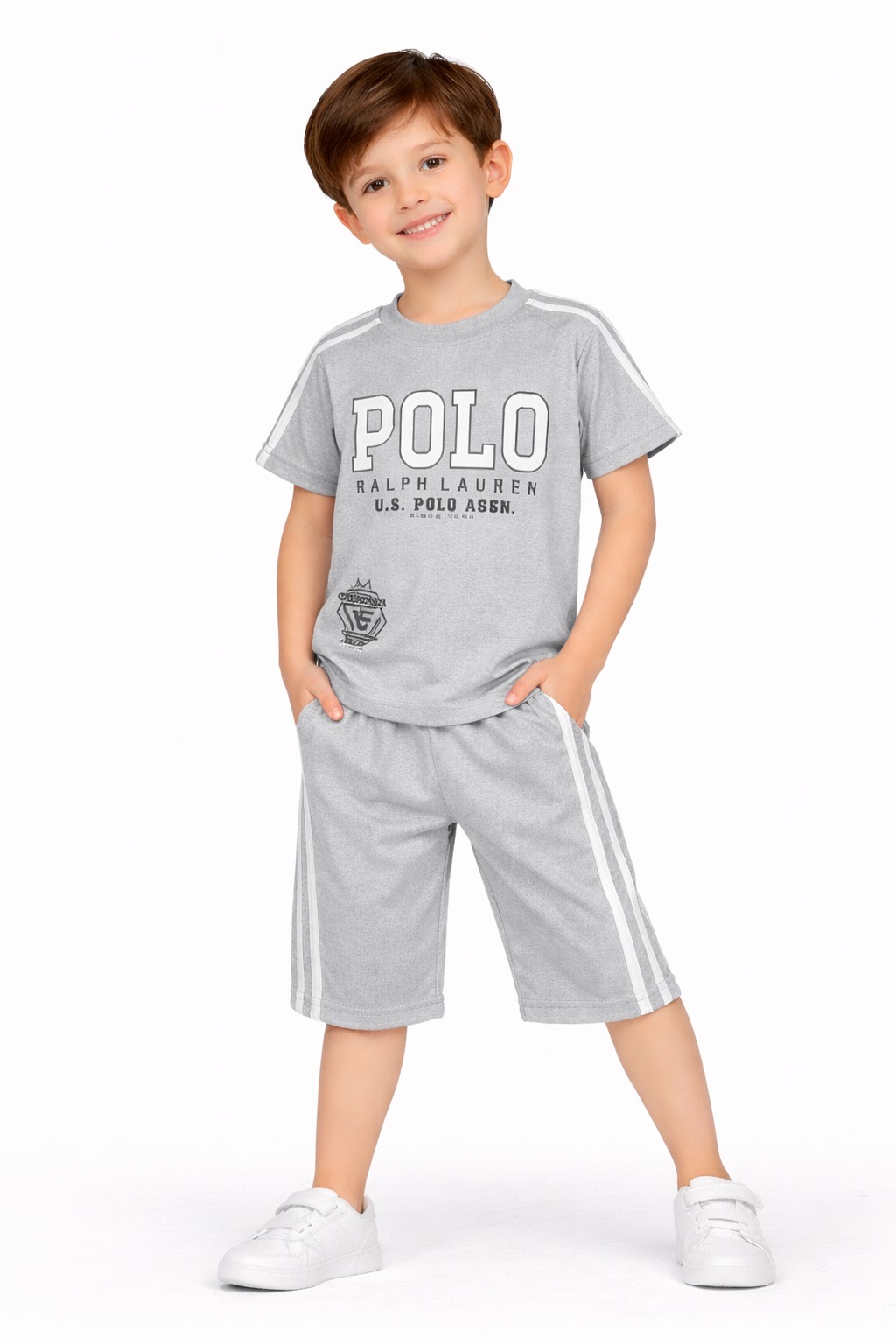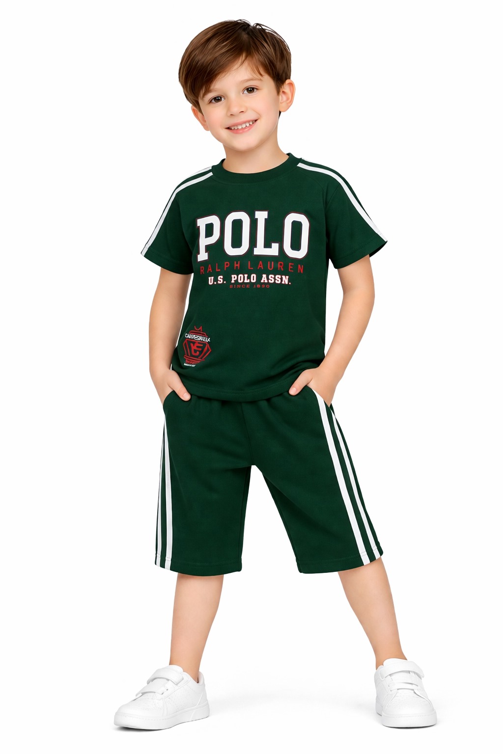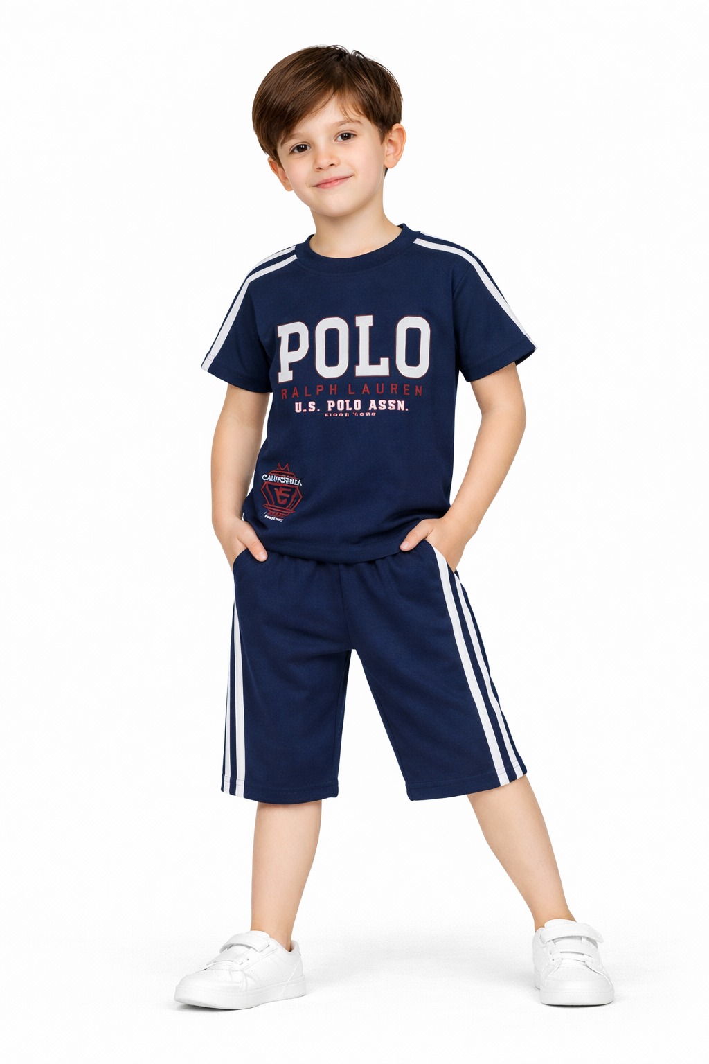 Kids Polo Style Co-ord Set | Printed T-Shirt & Capri Shorts Set