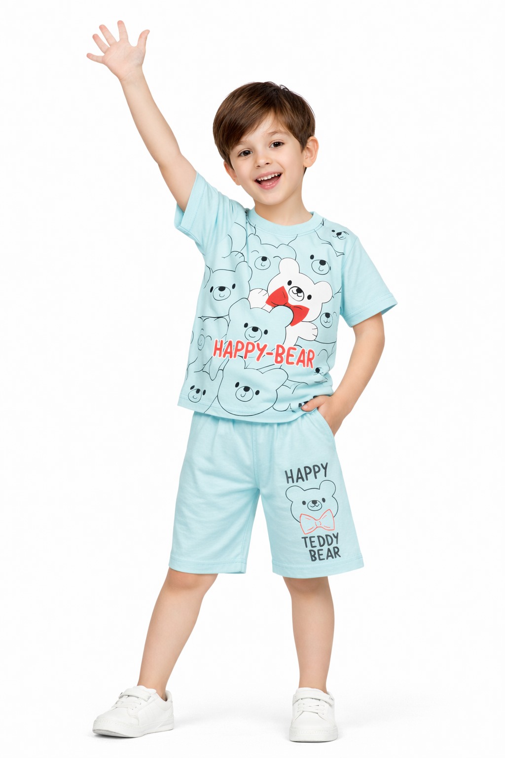 Make your little one look adorable and feel comfortable with this cute printed co-ord set. Featuring a fun cartoon bear design, this outfit is perfect for kids who love playful and colorful styles.