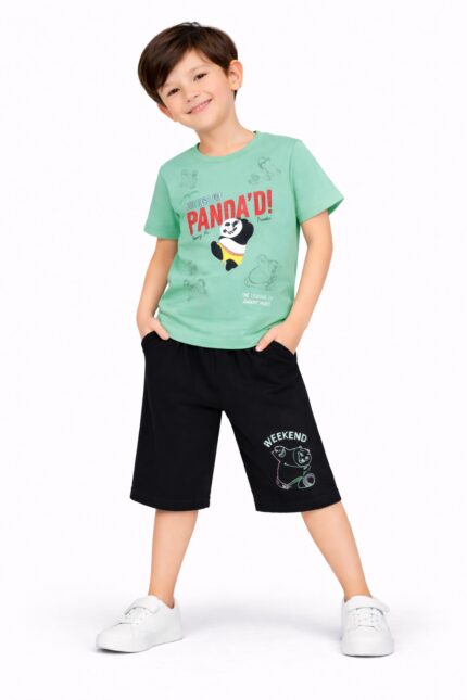 Kids Panda Print Capri Set | Cartoon T-Shirt & Shorts Co-ord Set