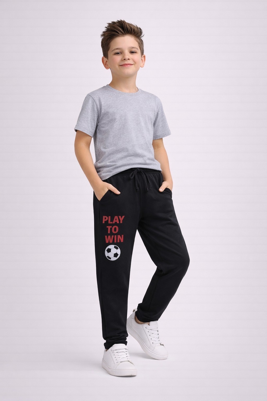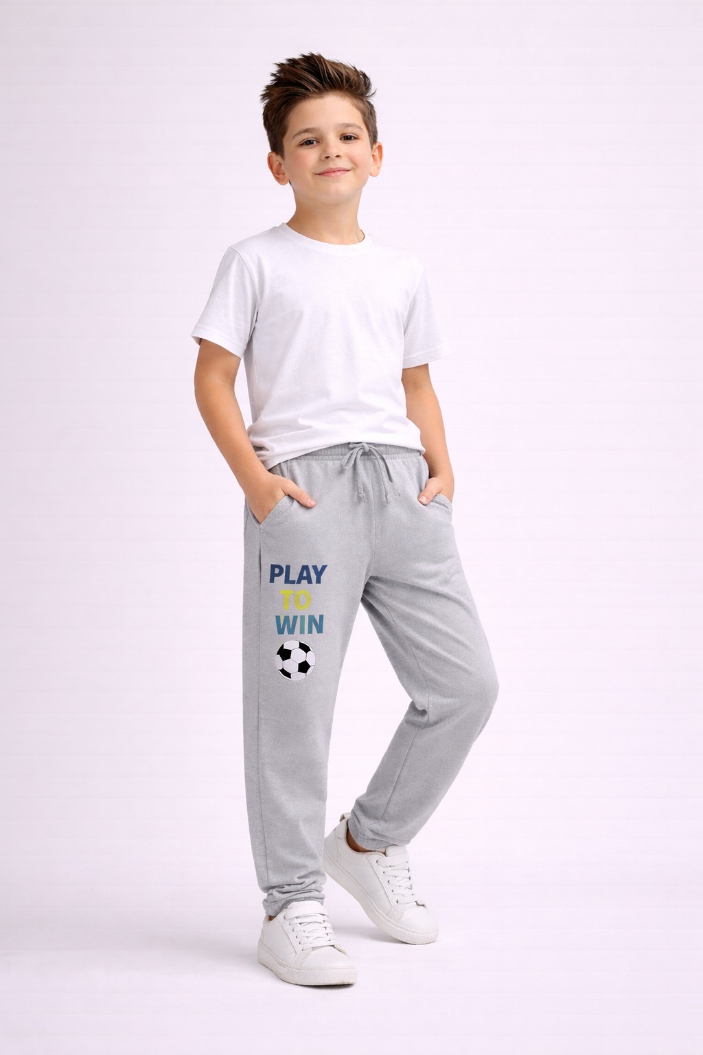 Give your kids a sporty and energetic look with these premium track pants, designed for both comfort and active lifestyle. Featuring a trendy “Play To Win” print with football graphic, these pants are perfect for kids who love sports and movement.