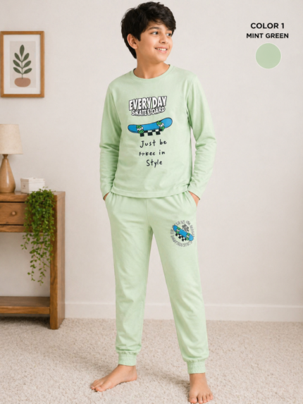 Perfect for lounging, sleepwear, travel, or casual home wear, this set combines stylish printed design with relaxed comfort that kids and teens love.