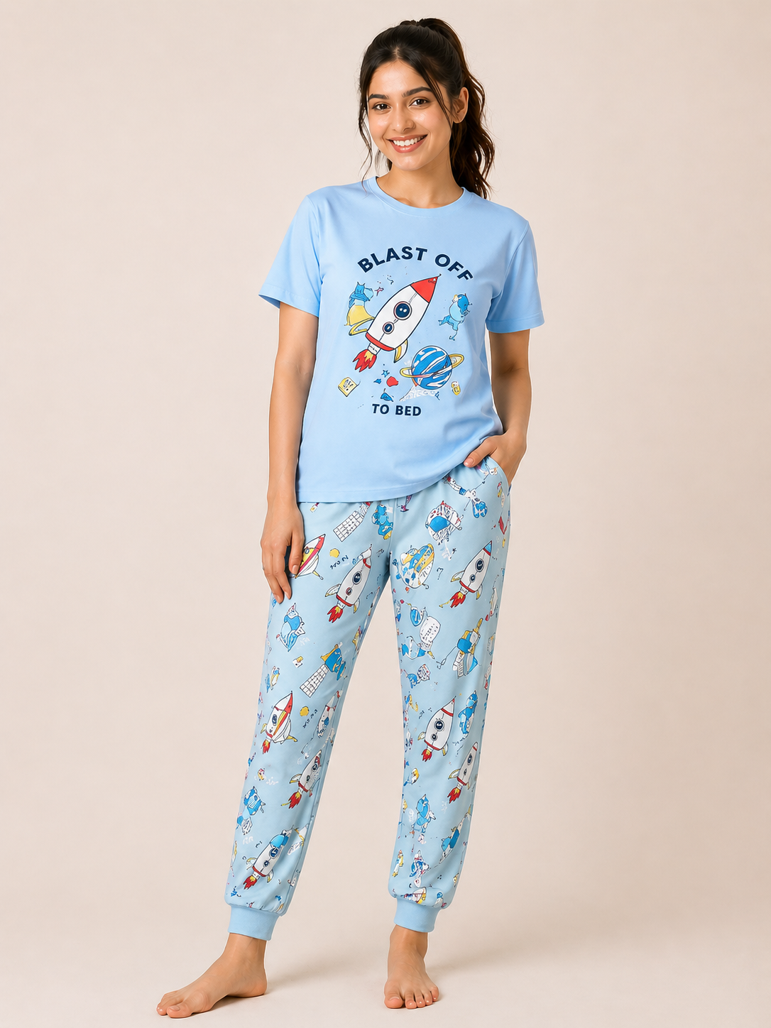 Sky Blue Rocket Print Set