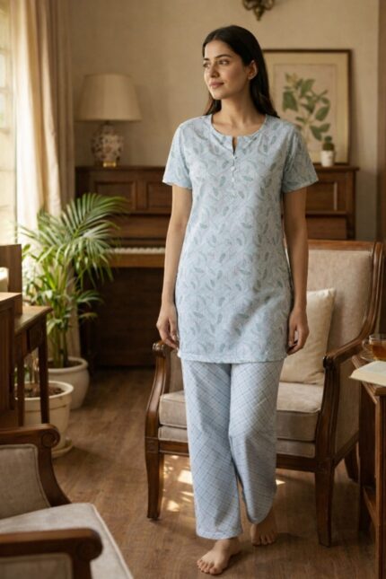 Ideal for home wear, casual mornings, and relaxed indoor routines, this set offers both comfort and elegance.