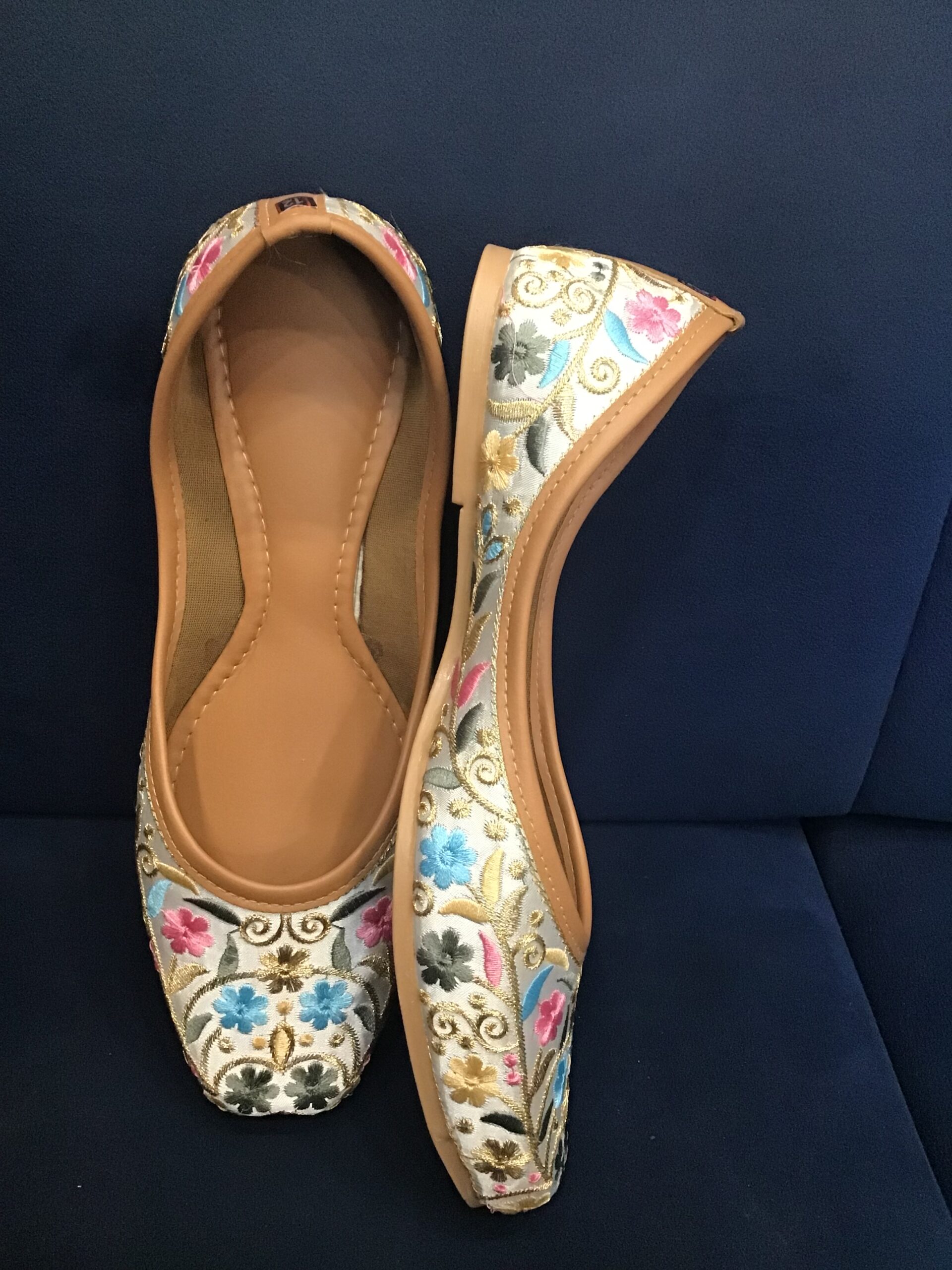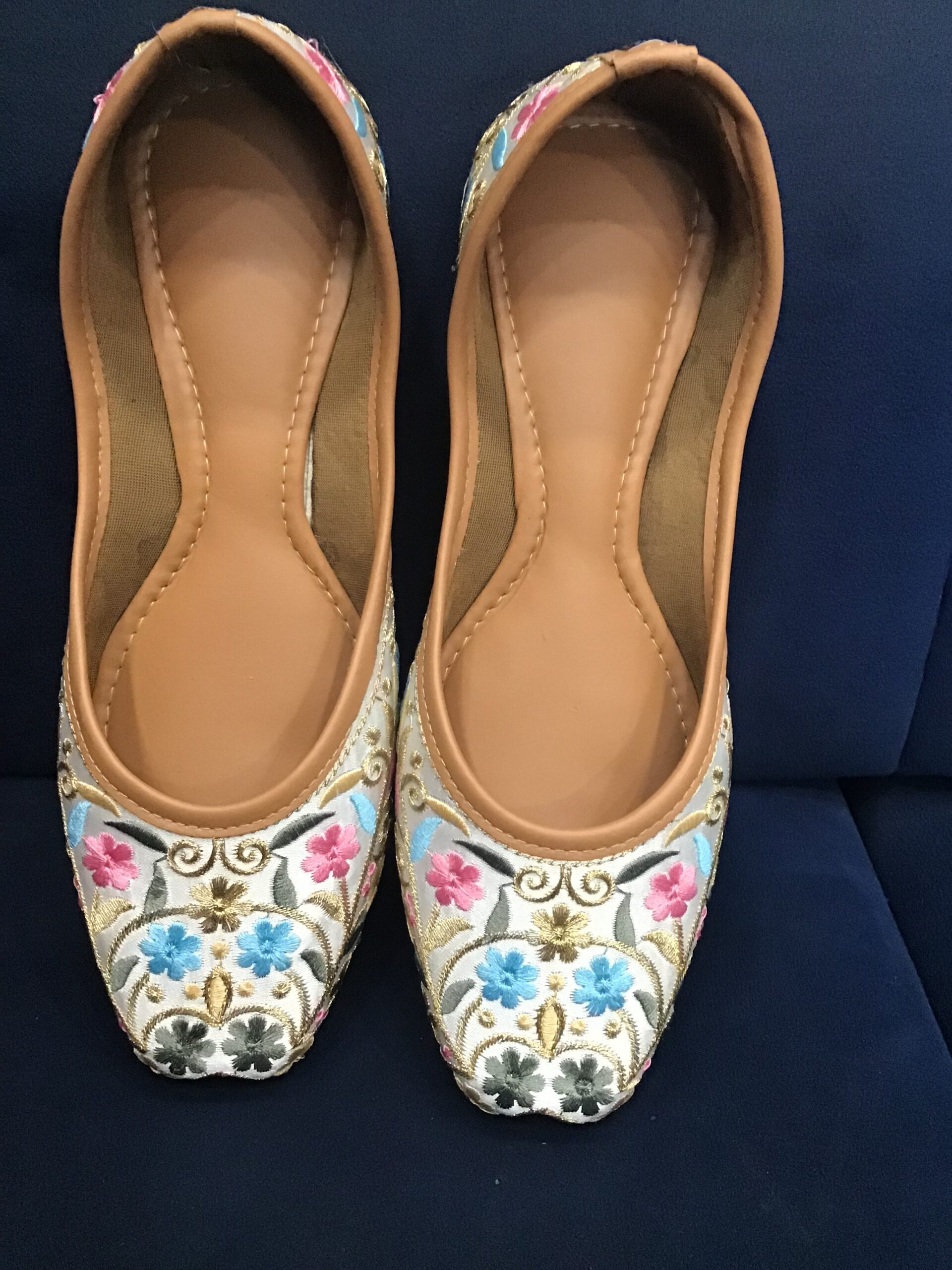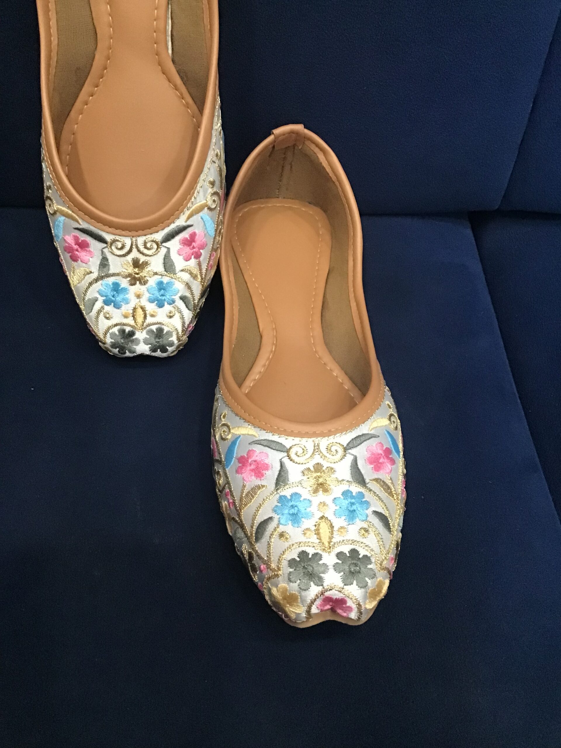Denim punjabi jutti thread phulkari work size 36 to 40