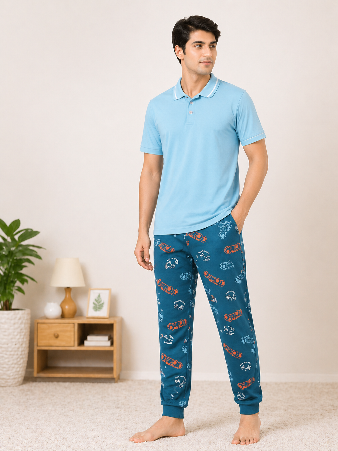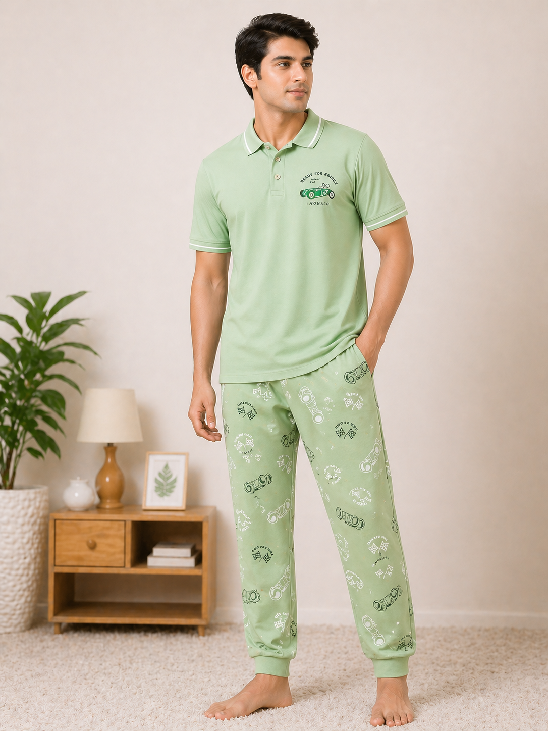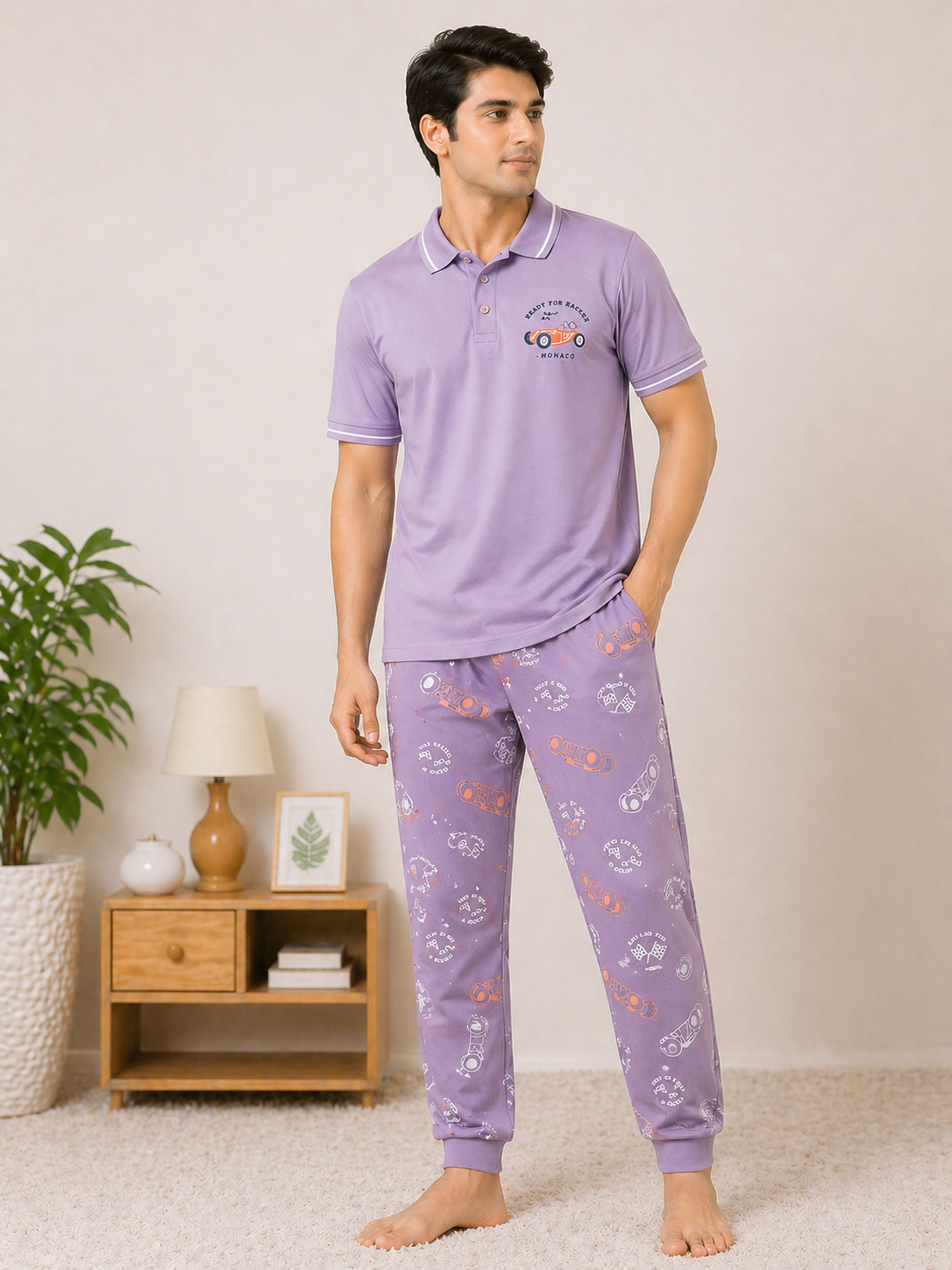 Relax in sporty everyday comfort with the MountPeak Ready For Race Lounge Set. Designed with a smart polo-style t-shirt and stylish printed jogger lowers, this lounge set blends modern casual fashion with ultra-soft comfort for daily wear.