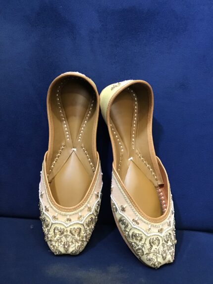 White Dabka beeds punjabi jutti hand embroidery