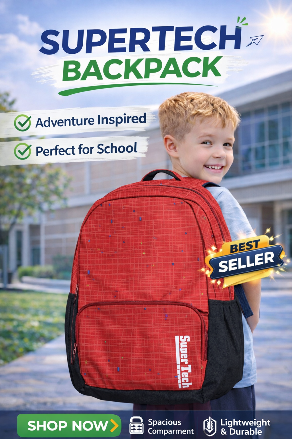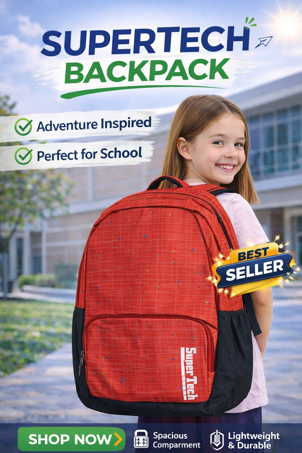 The Supertech Backpack is designed for durability, comfort, and everyday school use. Made with strong, lightweight fabric, it features spacious compartments to carry books, notebooks, and essentials easily. The padded shoulder straps ensure comfortable carrying, while the stylish design makes it perfect for students who want both functionality and a trendy look for school.
