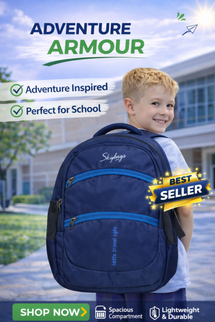 The Adventure Armour Backpack is designed for durability, comfort, and everyday school use. Made with strong, lightweight fabric, it features spacious compartments to carry books, notebooks, and essentials easily. The padded shoulder straps ensure comfortable carrying, while the stylish design makes it perfect for students who want both functionality and a trendy look for school.