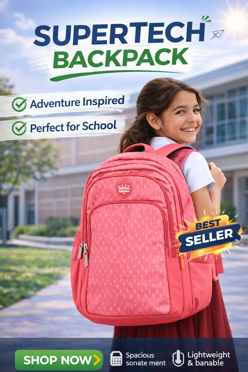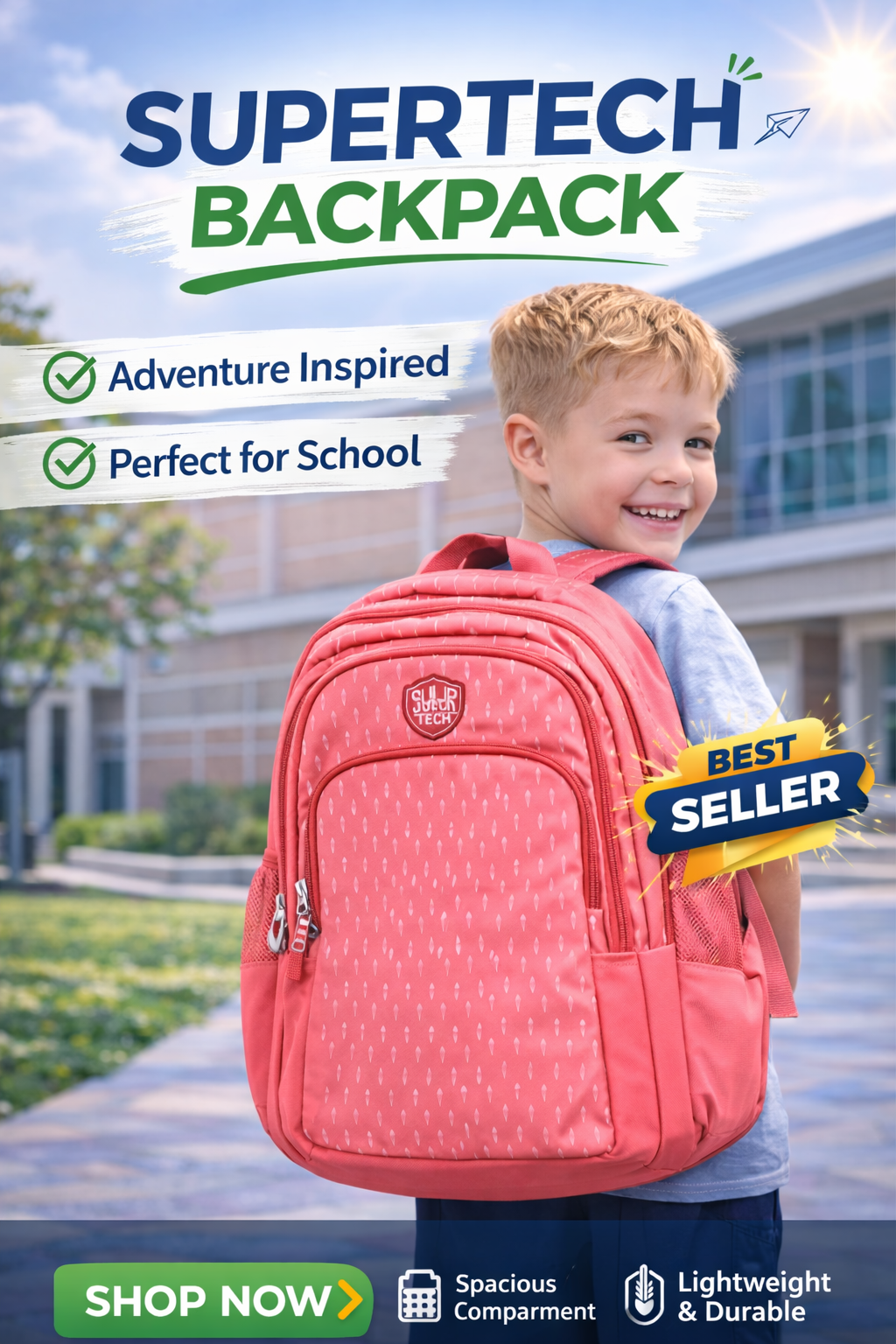 The Supertech Backpack is designed for durability, comfort, and everyday school use. Made with strong, lightweight fabric, it features spacious compartments to carry books, notebooks, and essentials easily. The padded shoulder straps ensure comfortable carrying, while the stylish design makes it perfect for students who want both functionality and a trendy look for school.