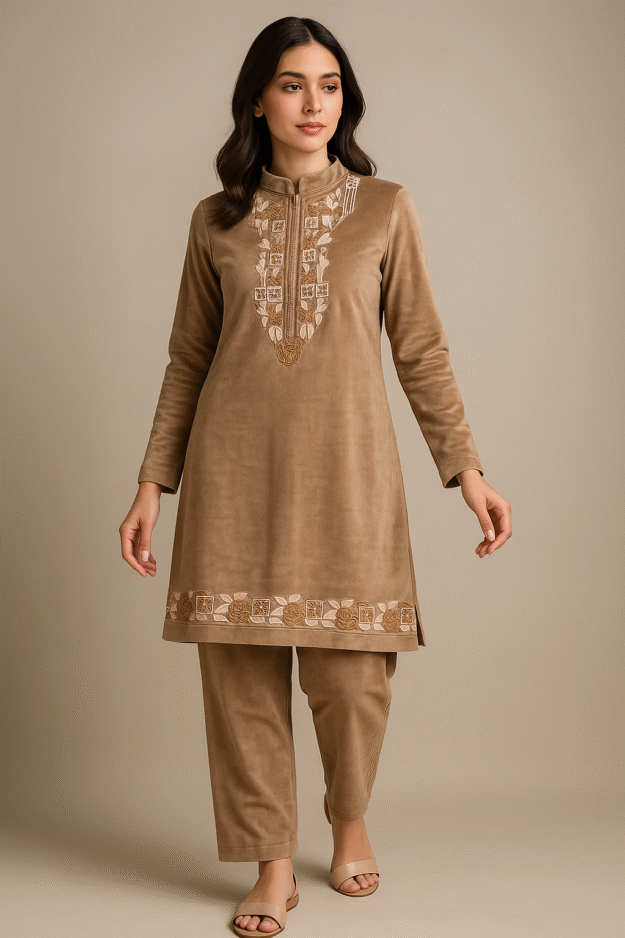 Co-rd set premium quality hand weave embroider on neck specially for winter goodquality elastic use in pants and good thread use in sticcihing