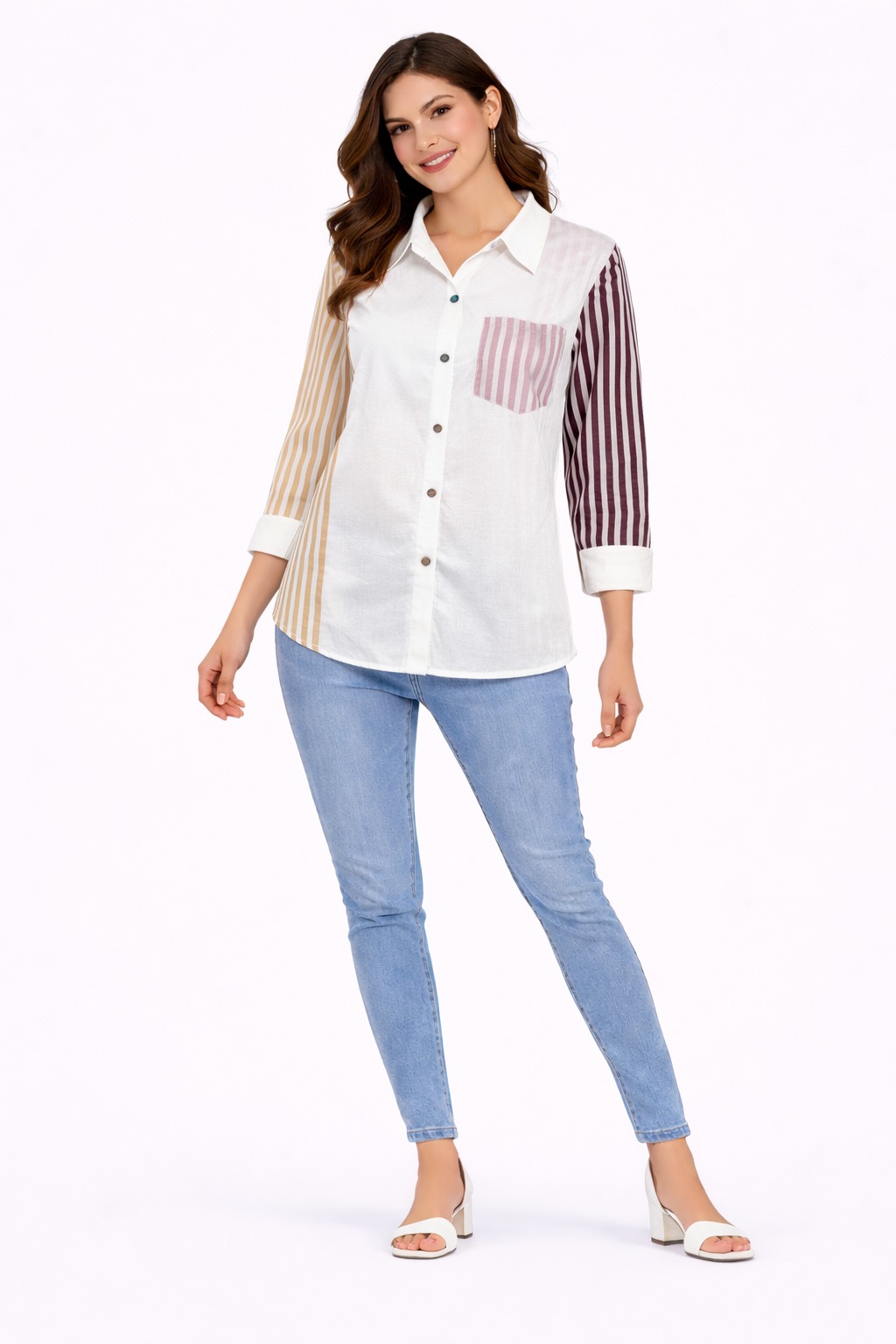 Women Color Block Striped Shirt | Casual Stylish Top (Free Size)