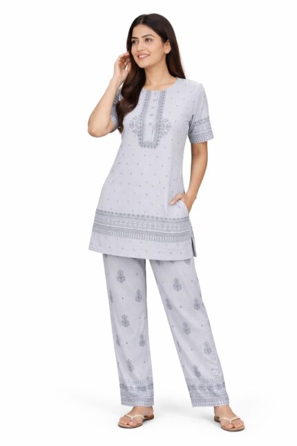 Women Printed Lounge Wear Lower Suit – Light Grey