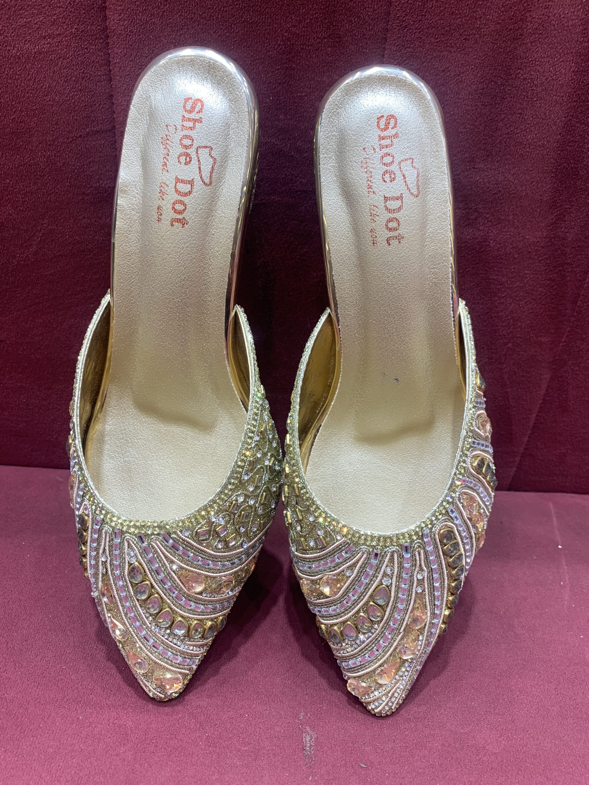 Women party wear mules hand work colour ,rose golden heel with golden