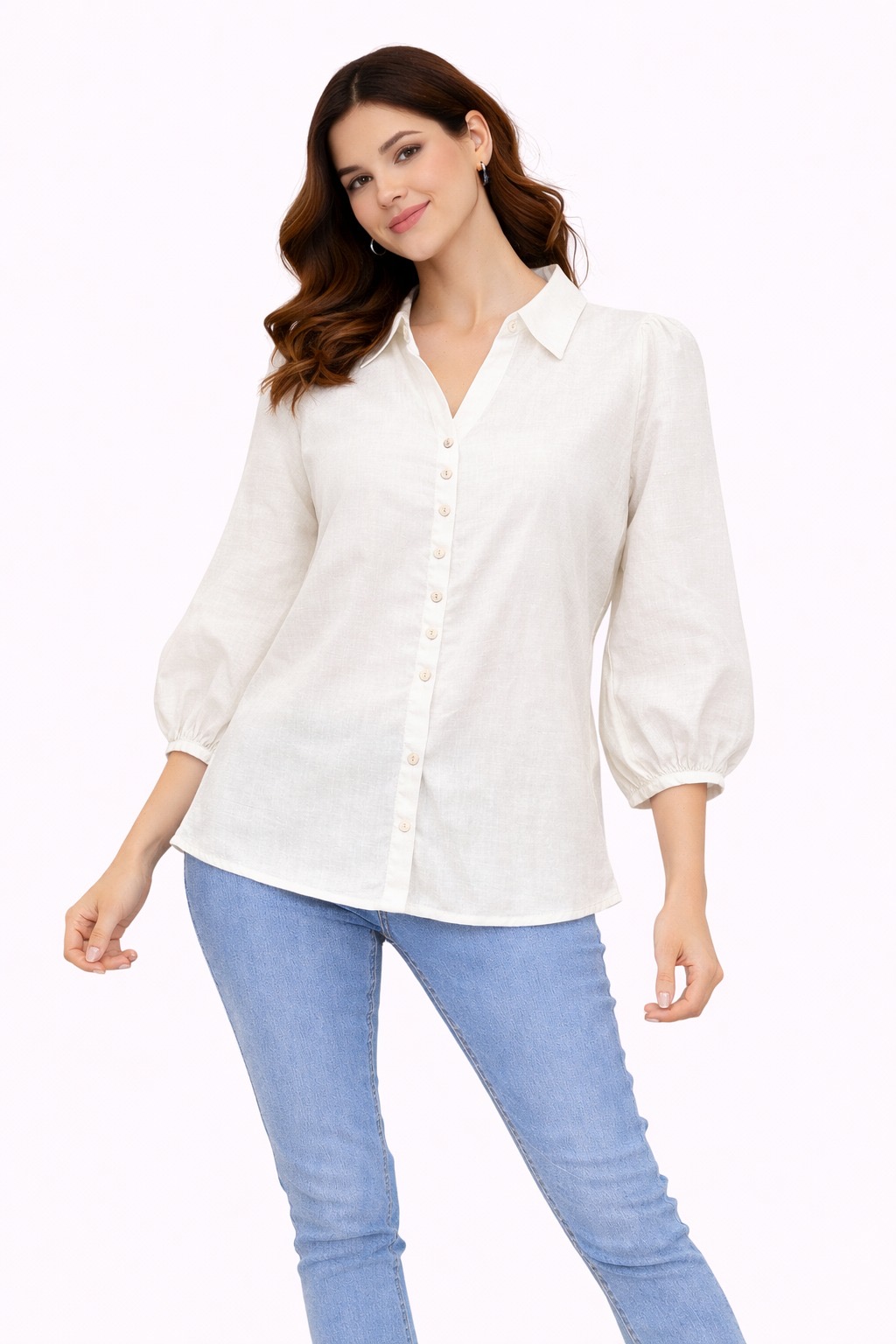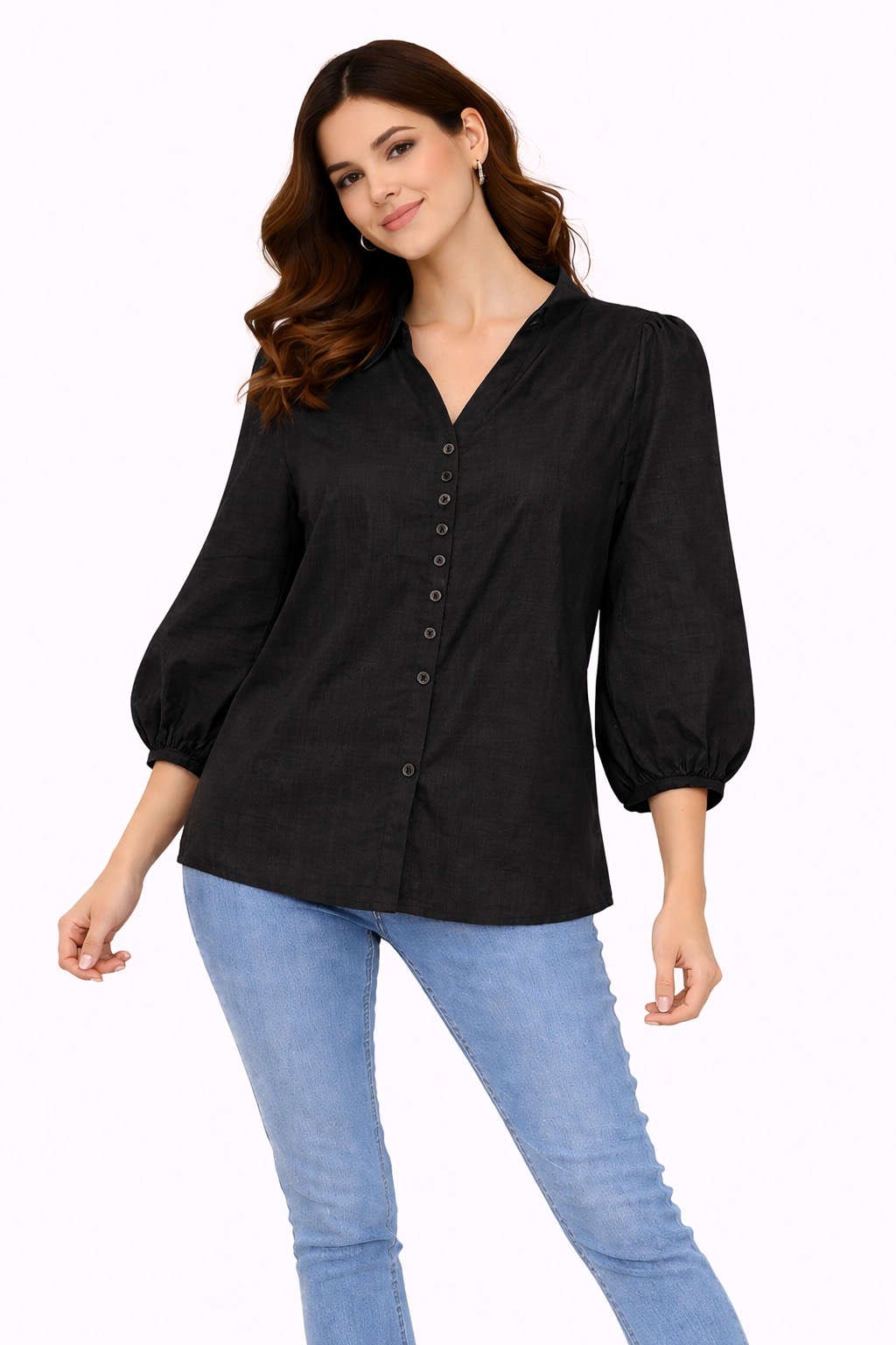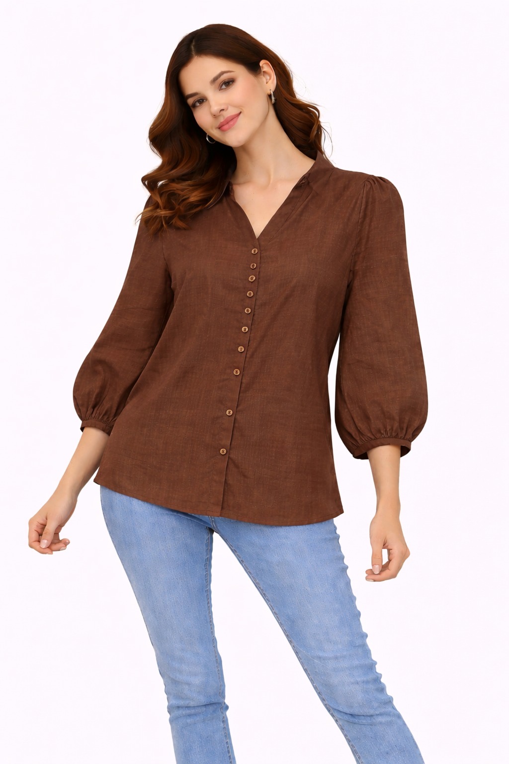 Women Solid V-Neck Button Top | Stylish Casual Shirt (Free Size)